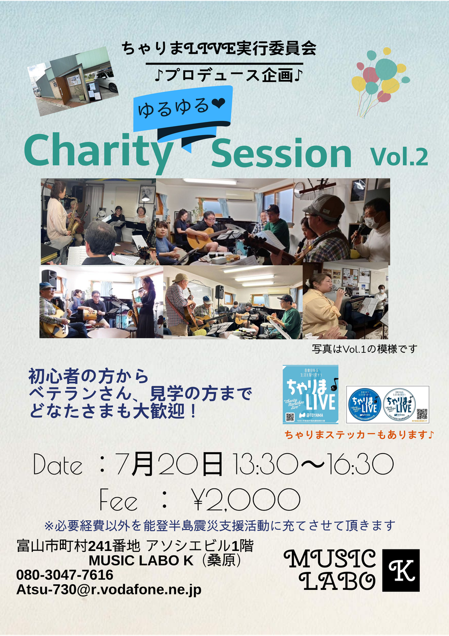 ゆるゆるっとチャリティセッション開催しました。ご参加いただいた皆さま、ありがとうございました!