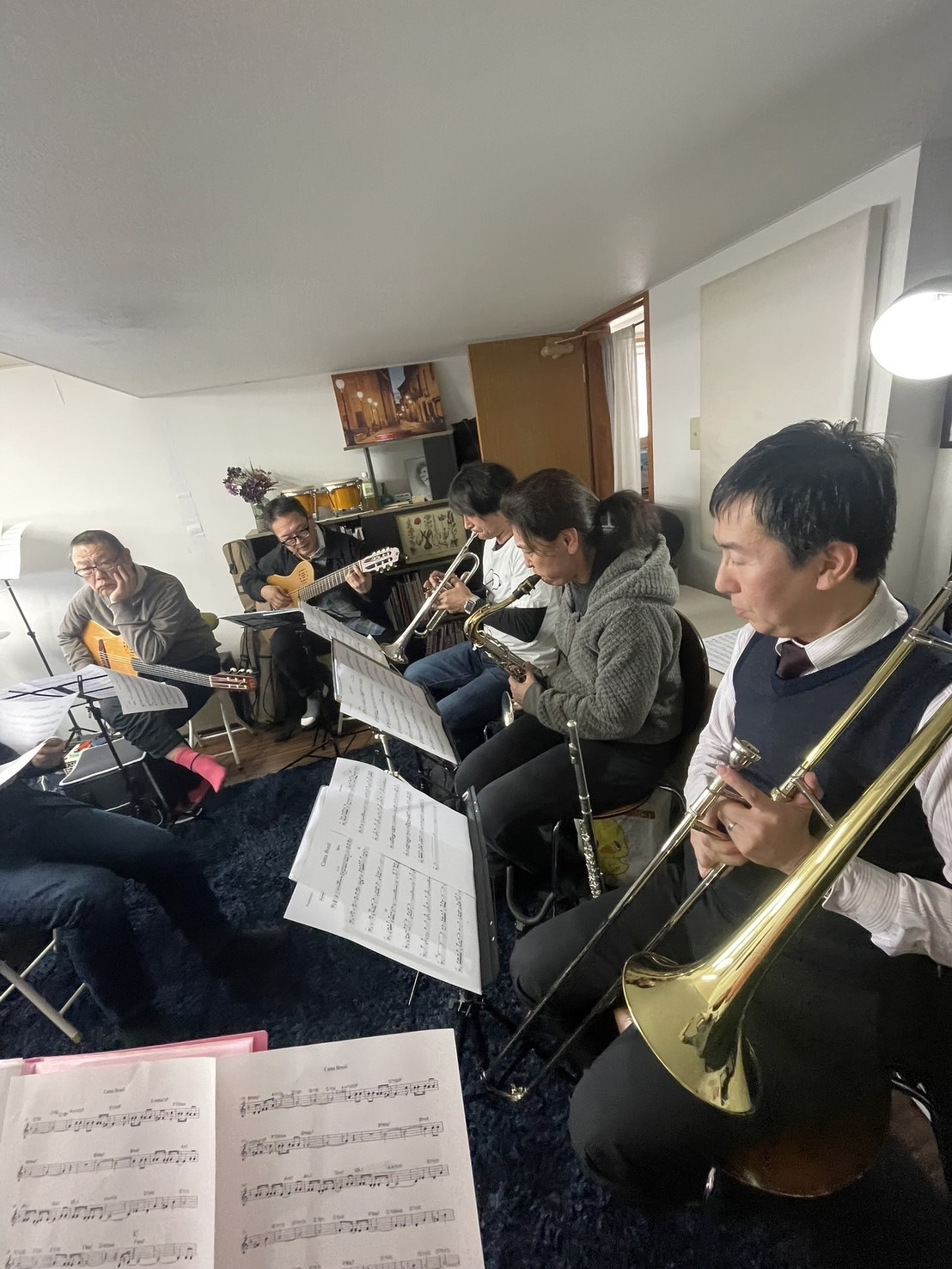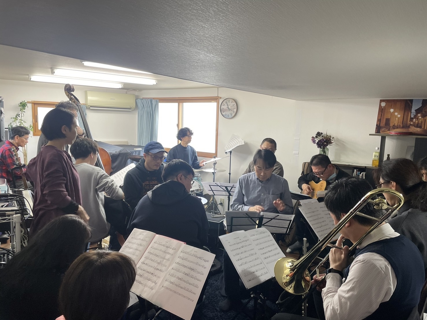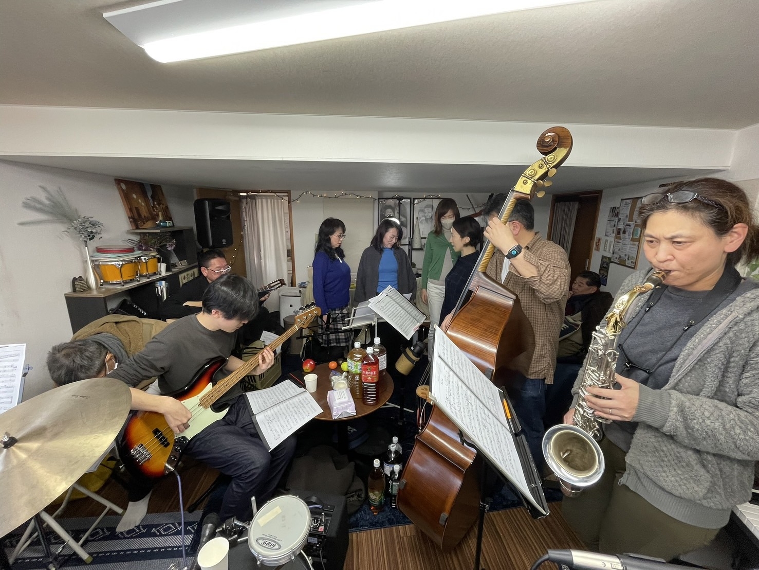 MUSIC LABO Kのスタジオ内でいつもギューギューに詰めてワイワイ楽しく練習しています。