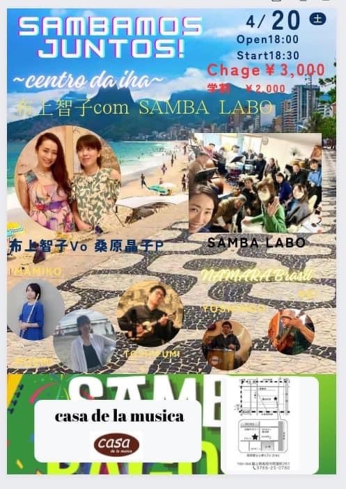 全国にファンのいる、富山が誇るサンバ・ボサノバシンガー布上智子を女将、普段はJAZZピアニスト桑原晶子を番頭とし、大学生からベテランさんまで、富山のサンバ好きが集まりました。