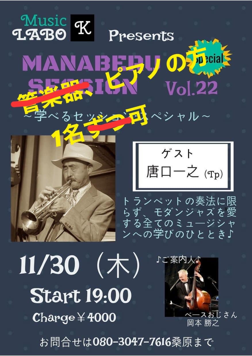 唐口一之さんと学べるセッション 参加者募集(ピアニストさんのみ) 2023.11.27 今週木曜日に迫りました、素晴らしいトランペッター唐口一之さんと学べるセッション おかげさまでほぼほぼ満席✨ ⭐️ピアニストさんのみ1名 ⭐️管楽器の方(募集終わりました) ご希望の方はお早めに桑原までご連絡くださいね。